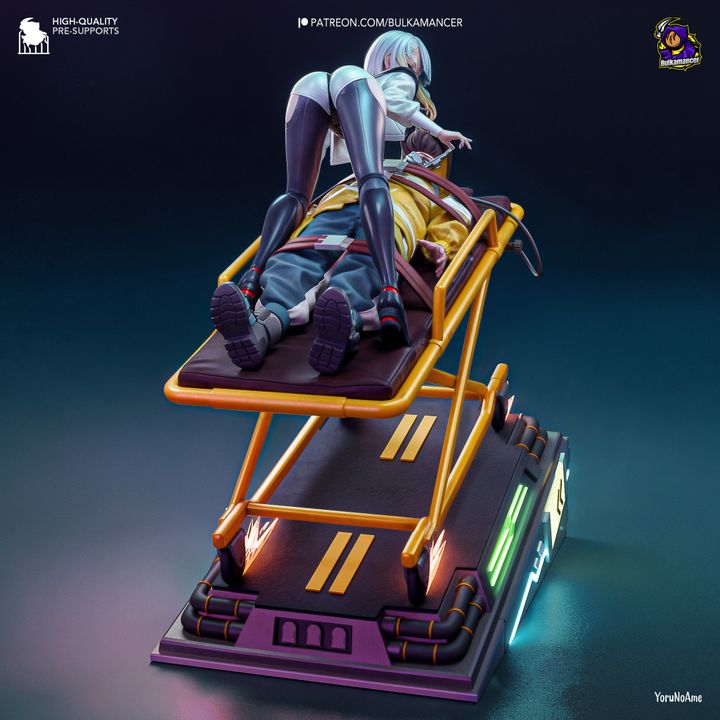 From Edgerunners, the gurney scene is brought to life by the Bulkamancer team and is ready to join your collection in a scale and finish of your choice!